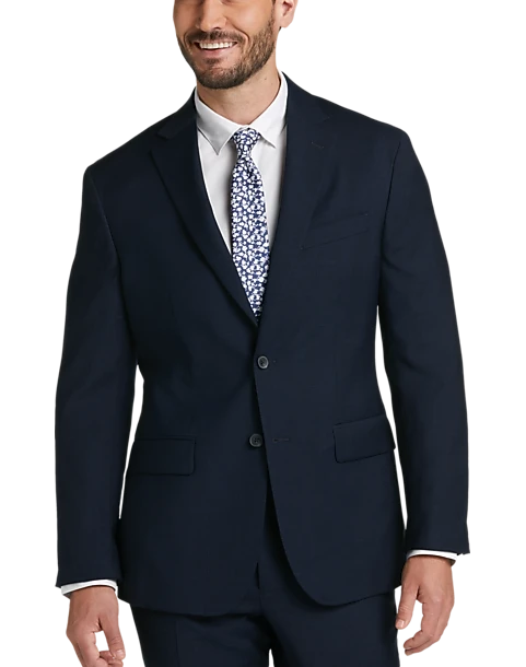 - 70% wool 27% polyester 3% spandex|Two button|Notch lapel|Side vents|Flat-front slacks|Modern Fit|Awearness Kenneth Cole|