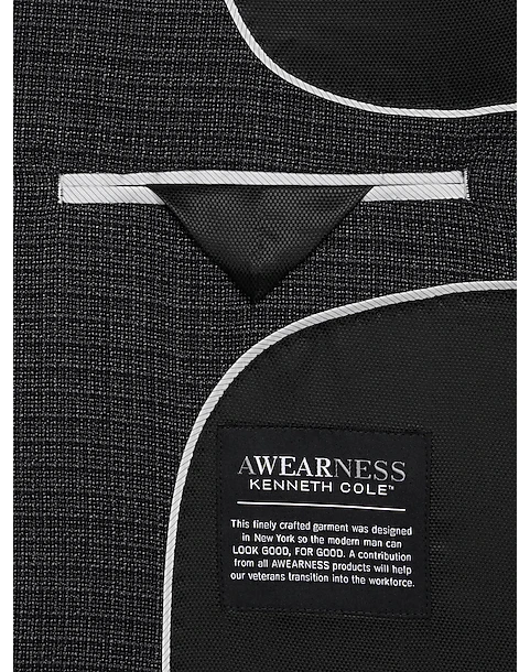 - 60% 37.5 technology wool 37.5 % polyester 2.5% lyocell|Two button|Notch lapel|Side vents|Modern Fit|Awearness Kenneth Cole|