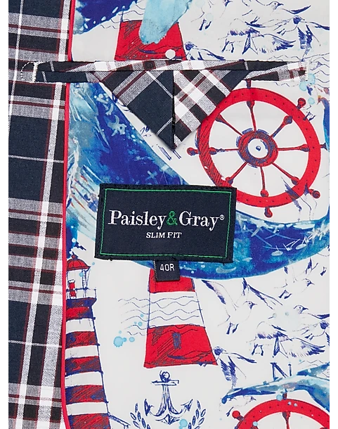 - 100% cotton|Two button|Notch lapel|Side vents|Flap pockets|Coordinating pieces sold separately|Slim Fit|Paisley & Gray|